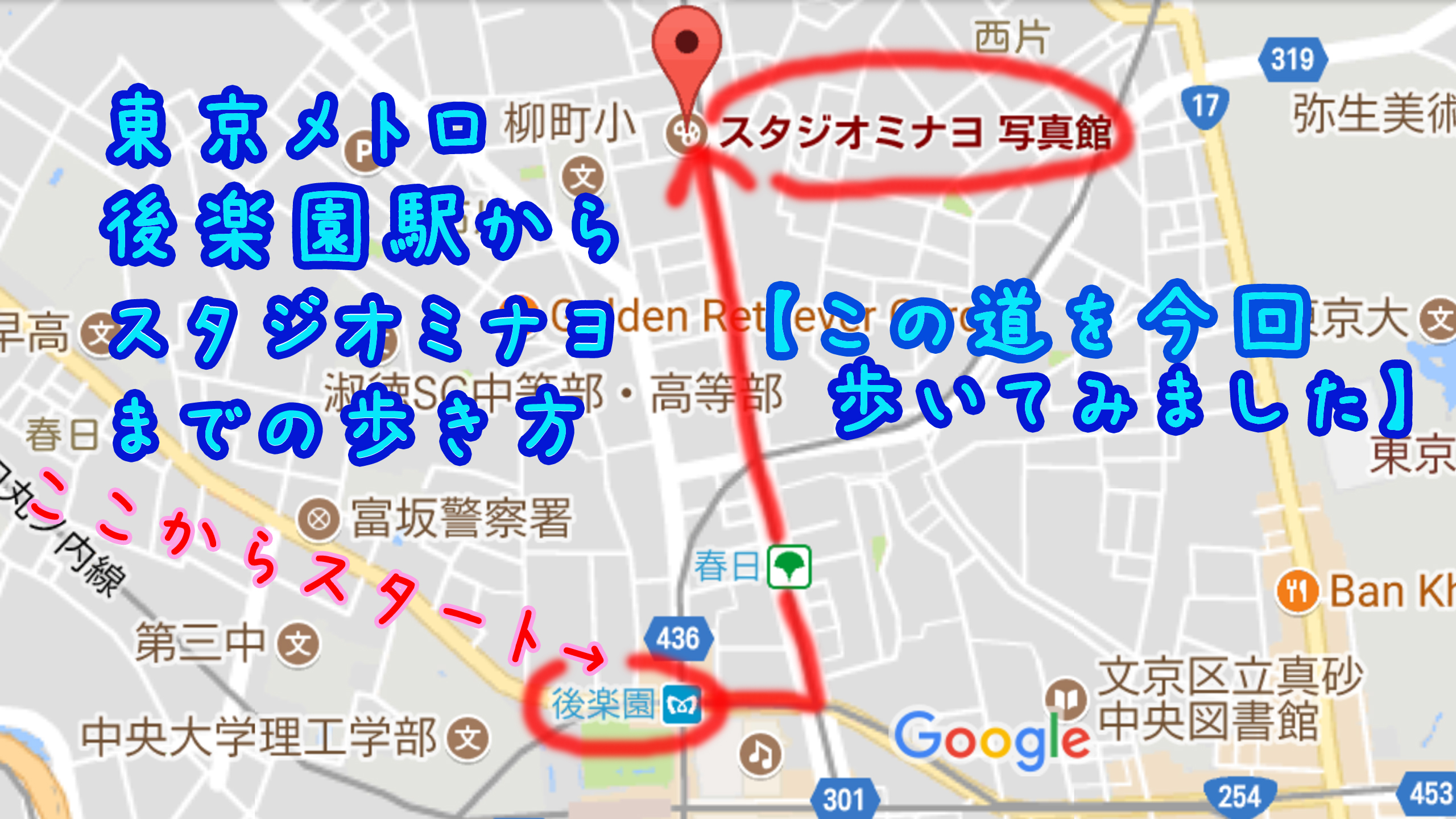 スタジオミナヨまでのアクセスその2~東京メトロ南北線と丸の内線の後楽園駅から最短15分で来れる歩き方~