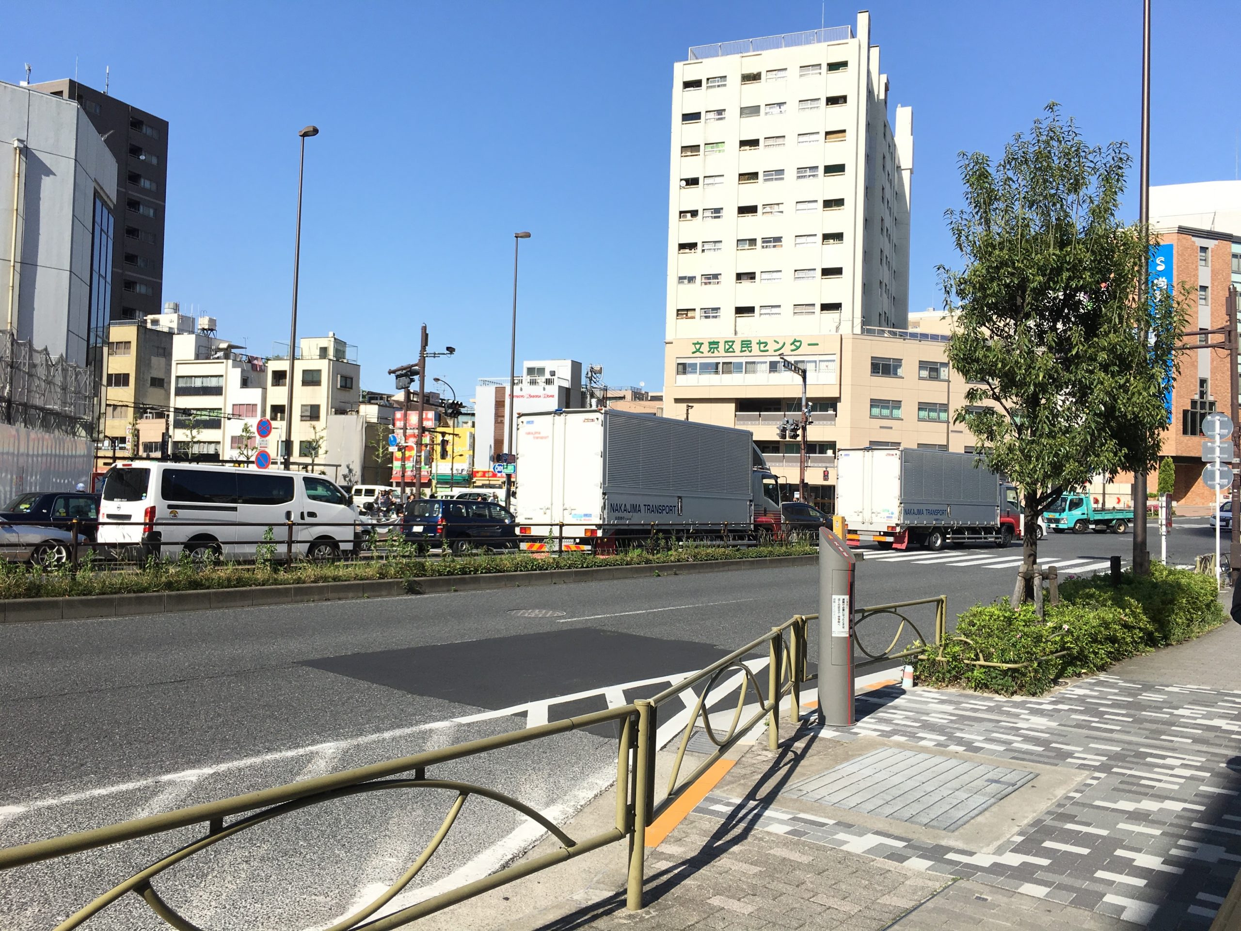 右手には文京区役所、別名『文京シビックセンター』が見えてます。